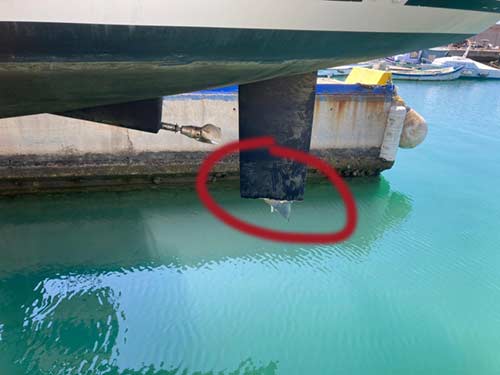Während die große Y7 (70 Fuß) nach dem Orca-Angriff keine Schäden aufwies, hat es die Beneteau heftiger erwischt. Das Ruder war teilweise abgebissen, auch hat das kleinere Schiff am Kiel durch die andauernden Rammings mehr einstecken müssen.