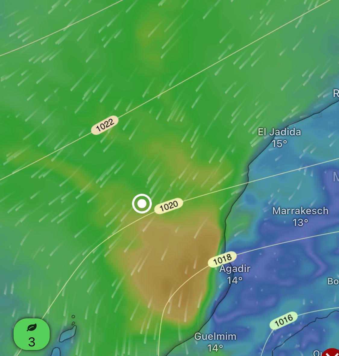 Kaum Wind.Unter Code 0 machten wir uns auf den Weg an die Küste und erreichten den reinen Fischerhafen Essaouira noch vor Sonnenuntergang. Dort wehte es inzwischen auflandig mit 20 Knoten und entsprechenden Wellen. Wir hatten mit der Rettungsleitstelle, dem MRCC Rabat per Telefon Kontakt gehabt und vereinbart, dass das örtliche SAR (Search and Rescue)-Boot bei Ankunft rauskommen und uns in die Bucht schleppen würde. Zwar war die Windrichtung günstig und man hätte vielleicht auch hinein segeln können, aber wir wollten lieber auf Nummer sicher gehen. Wir haben wohl zu viele Videos gesehen, in denen Boote in Wellen am Eingang von Buchten aus dem Ruder laufen.