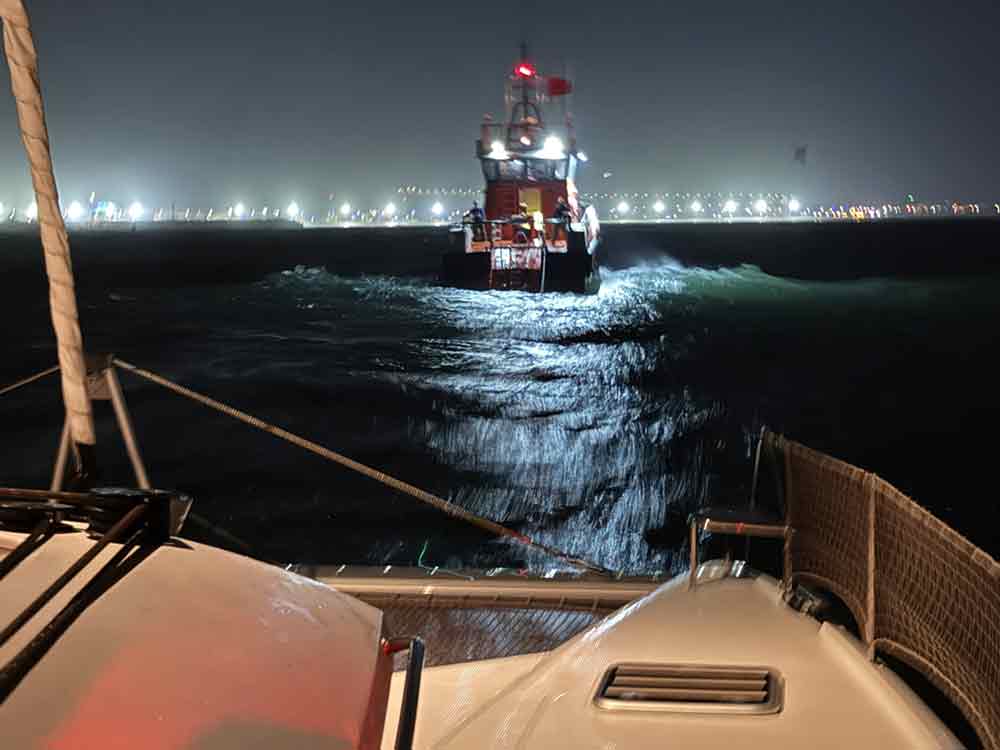 Es war früher Morgen. Don und Michael waren wieder fit. Zum Glück hatte sich an Bord noch eine Ersatz-Bilgepumpe gefunden, die die beiden verkabelten, mit Filter und Schläuchen ausstatteten und im Maschinenraum installierten. Als die erste Pumpe schon schwächelte, weil sie im Dauereinsatz zu heiß geworden war, begann die neue ihren Job zu übernehmen. Während dies alles geschah rauschten wir bei halbem Wind mit neun, zehn Knoten Speed gen Osten. Die Küste war noch über 300 Meilen entfernt. Das MRCC Lisboa erkundigte sich alle 6 Stunden via Satellit danach, ob alles in Ordnung war. Wir fanden wieder in eine Bordroutine, zu der das regelmäßige Lenzen des Maschinenraums gehörte: Jede Stunde musste der Wachhabende dort am Heck hinunter klettern (was bei Seegang ziemlich heikel ist) und die Pumpe anstellen. Nach etwa 20 Minuten musste die Pumpe wieder ausgestellt werden, damit sie nicht heiß lief. Der Wind frischte immer noch auf, was mir Sorgen bereitete. Die Kräfte, die auf Rumpf und Skeg wirkten, wurden ja immer größer. Immerhin kamen wir gut voran. Nur mit einer Maschine wäre der Katamaran auch elend langsam gewesen. Unter Segeln lag unser Etmal um die 190 Meilen.